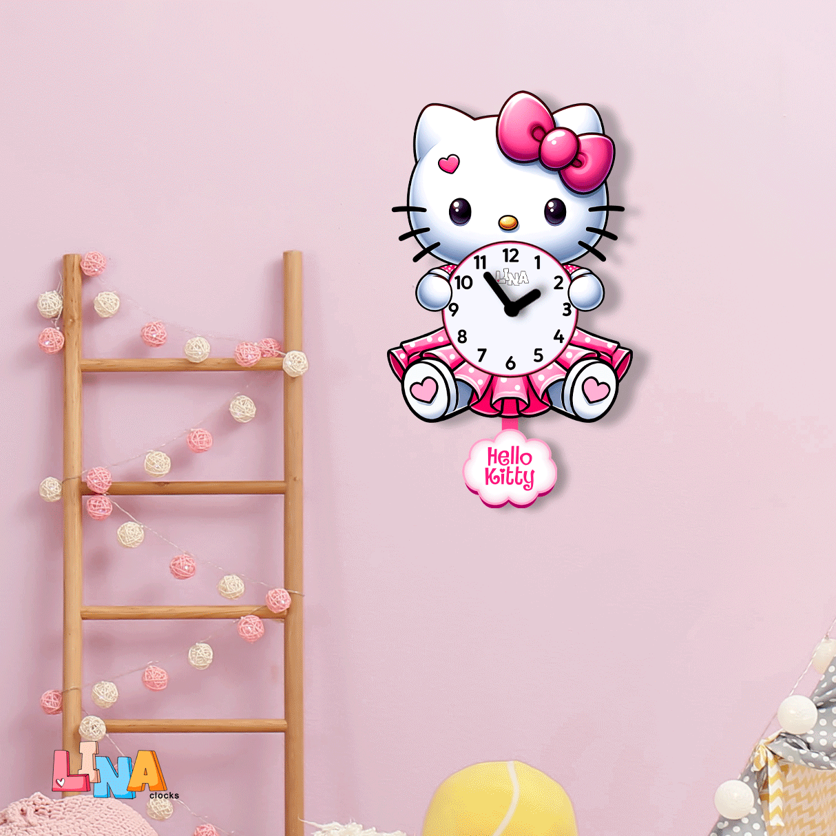 در اتاق کودک، ساعت دیواری پاندولی کیتی به دیوار نصب شده بود. با هر تیکتاک، کیتی با لبخند شیرینش به کودک نگاه میکرد و اتاق را پر از شادی و رنگهای زیبا میکرد. کودک هر شب با صدای دلنشین پاندول به خواب میرفت و صبحها با لبخند و انرژی بیدار میشد.